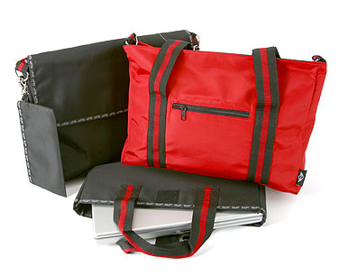 • reversible tote/messenger bag with coordinating computer sleeve and accessory bag